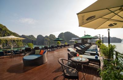 17:30: Summit on the sundeck for watching the magnificent sunset over the Gulf of Tonkin, you are invited to Sunset party (we serve you local snacks and fresh fruits) and do not miss the special offer “Happy hours – buy 2 get 1 for free” (from 17:30 to 19:00).